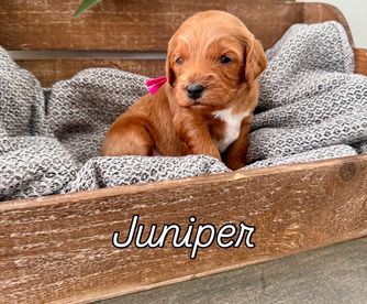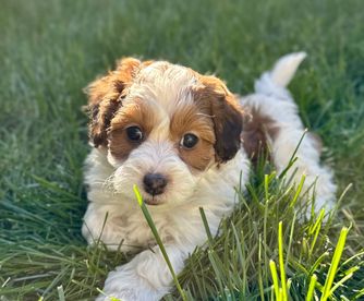 Our Cavapoo puppies include blenheim and red. Havapoo puppies include black and tan, black, red, and red sable. Colors will vary depending on the parent dogs.
