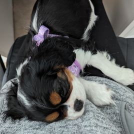 My dogs are part of my family. I spend all of my time, energy and love on my Cavalier KCS. I provide early neurological stimulation (ENS) exercises with our newborn puppies and I start their puppy potty training. I provide a learning environment to increase puppy brain and motor development.