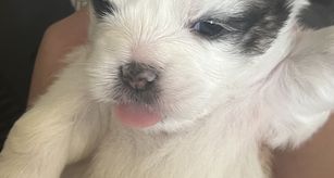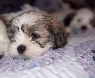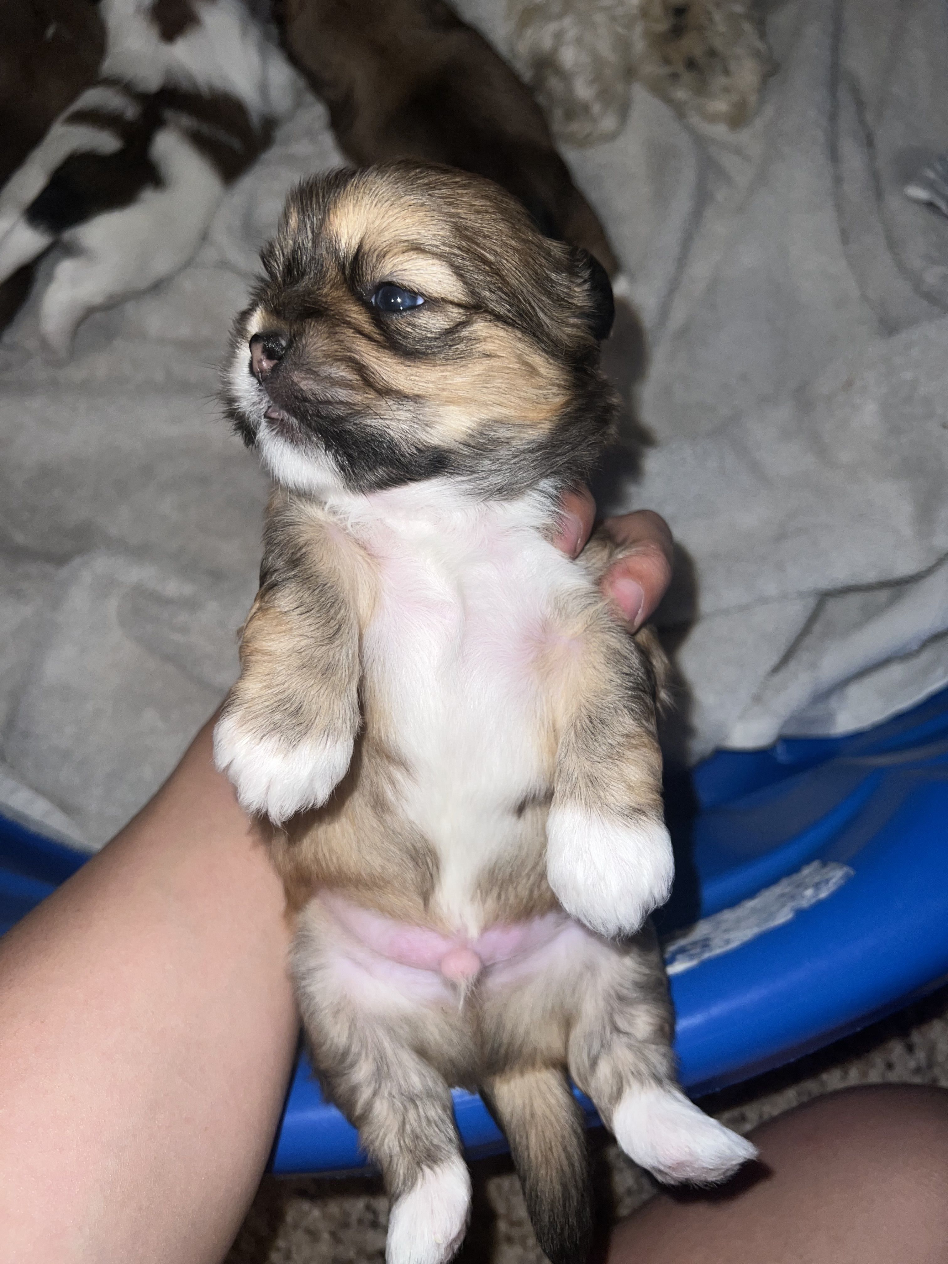 All the puppies sleep in our room in a huge playpen. They are cuddles daily and are socialized around other dogs, cats and toddlers. We feed them Blue Buffalo and also give them puppy formula. They are puppy pad trained and all loved to be held by humans.