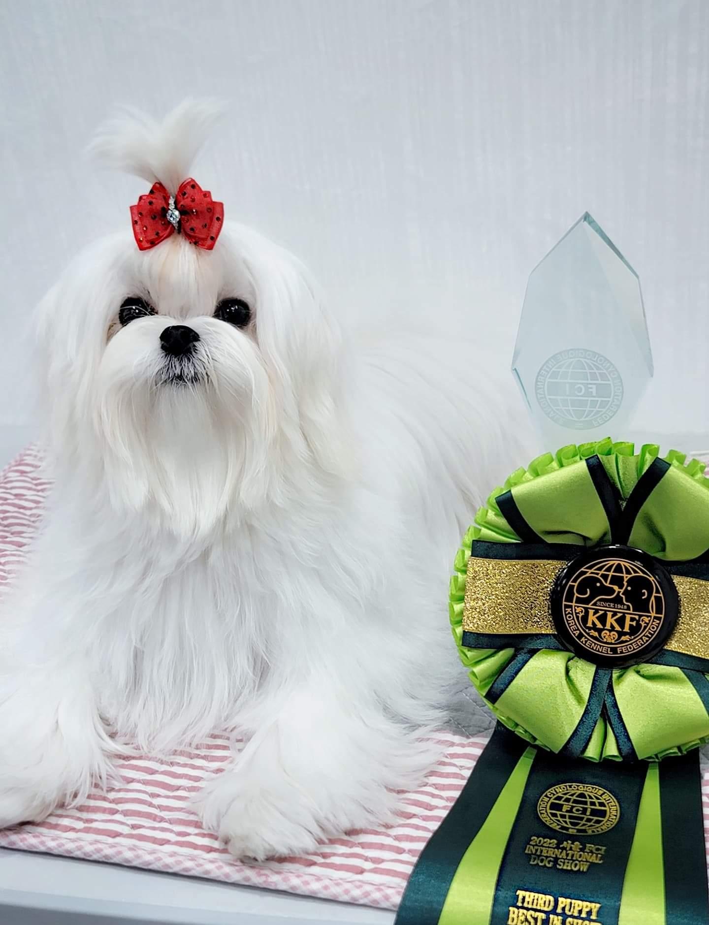JANGMI is a female Maltese. Carefully selected as a great representative of her breed, Melissa Germain decided to make her part of their program. Melissa Germain has passed Good Dog’s screening process, which involved a review of their breeding practices, environment, and the mental and physical health of their dogs.