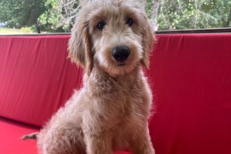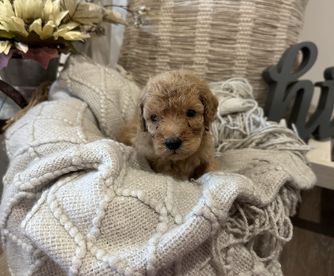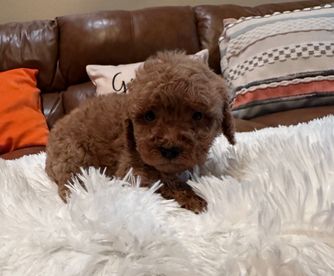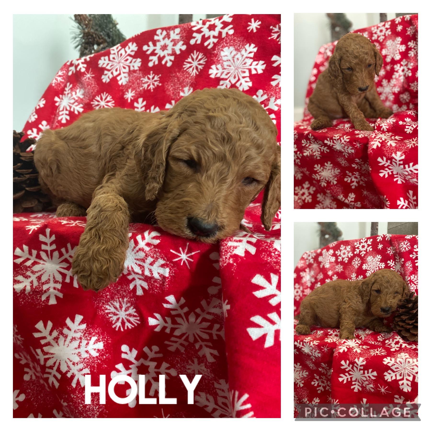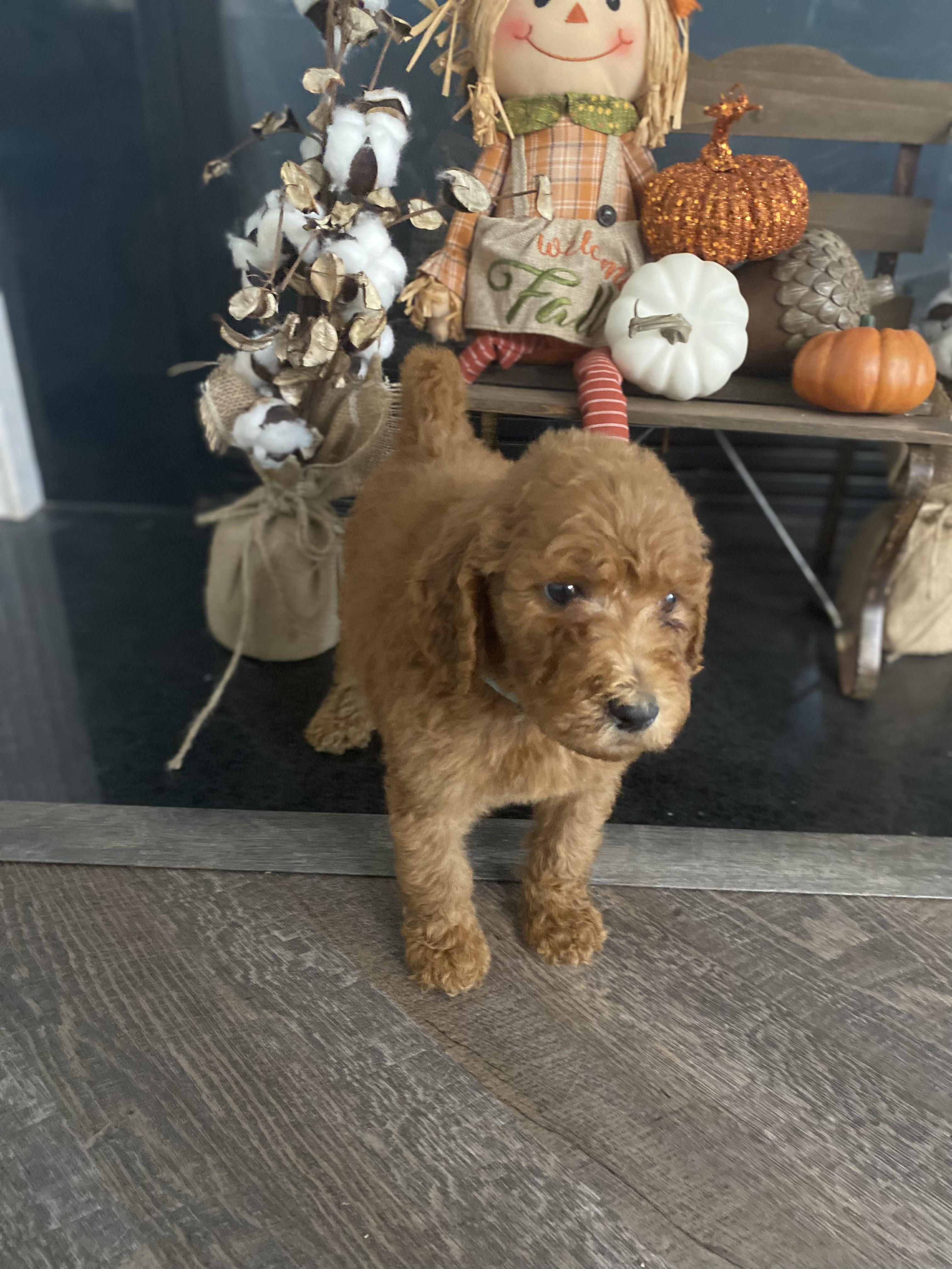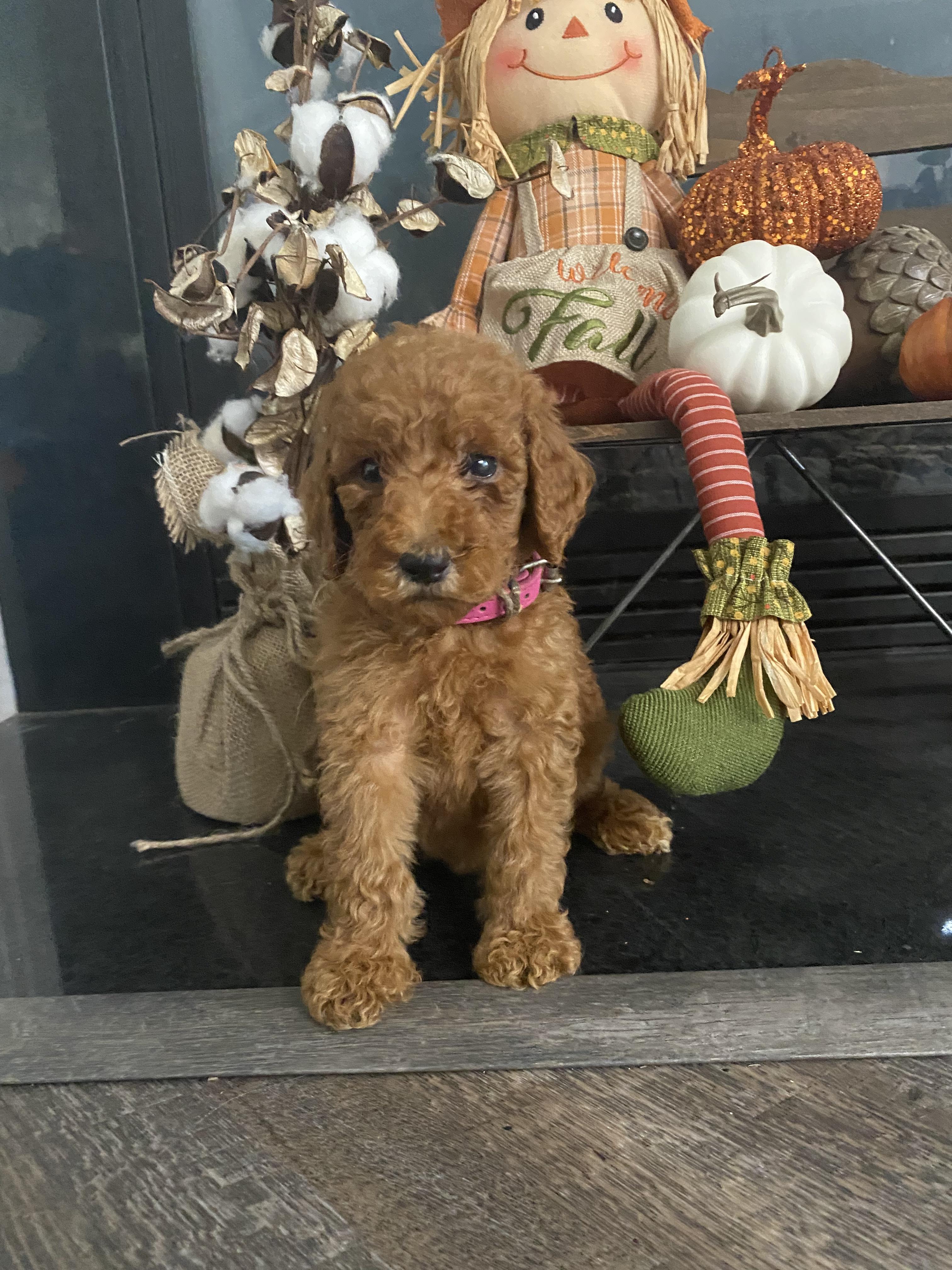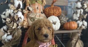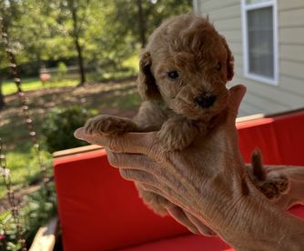 Ellie is such an all around great dog!! She is so full of energy and life and love! She is a micro mini Goldendoodle. She weighs 12 lbs and she is a light red with white on her chest and feet!