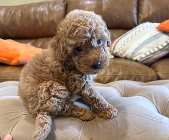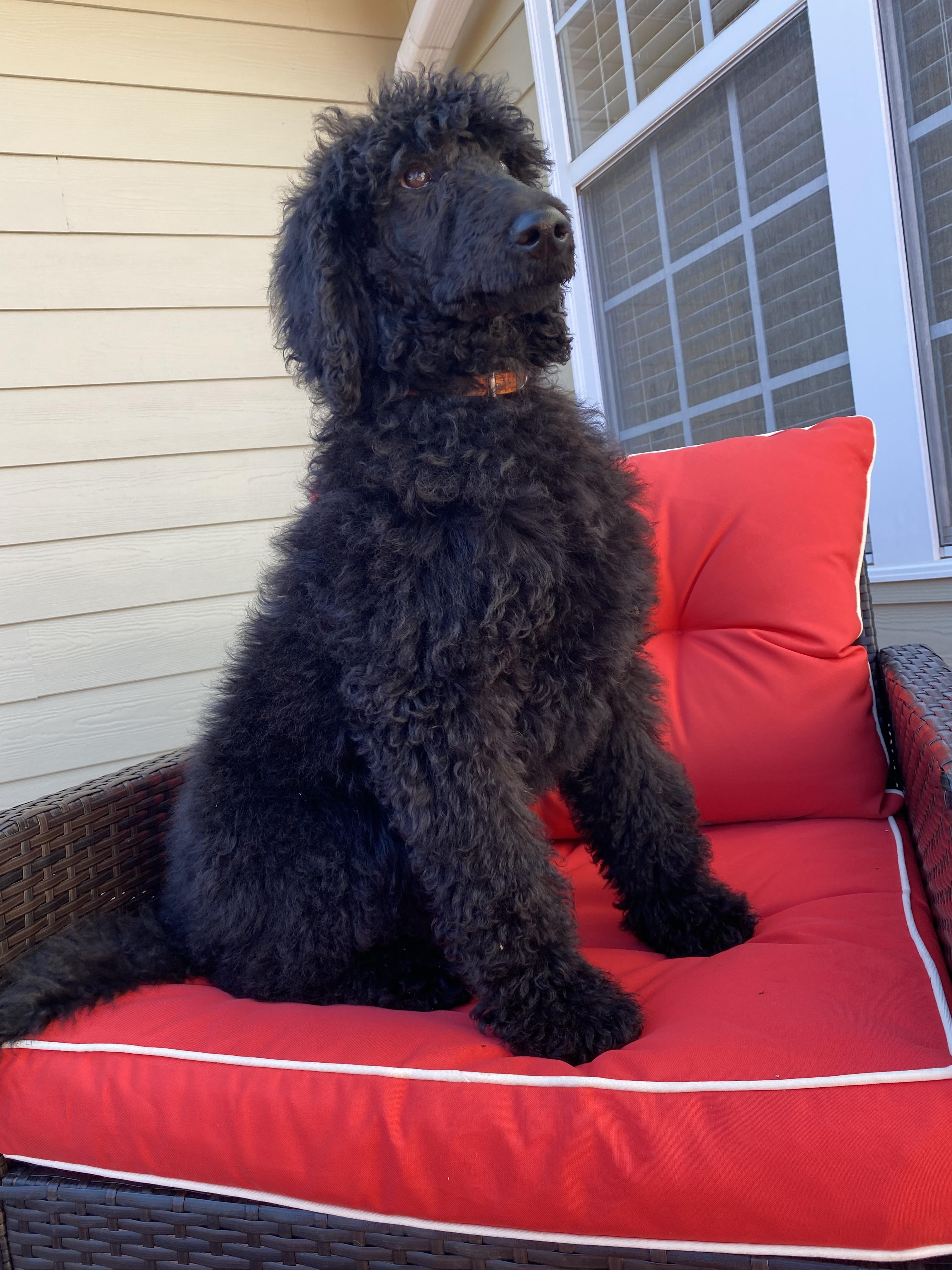 I had never had a standard poodle until 5 years ago when I got my very first one who I still have today. She was 8 months old when I got her and I immediately fell in love and was in awe of how smart she was and how calm she was. From then on I decided I wanted to raise standard poodles. Then I expanded fell in love with miniature poodles and micro mini goldendoodles and that is what I breed currently!