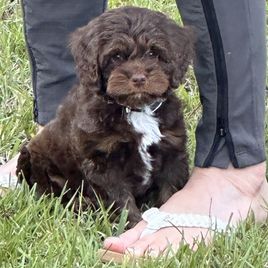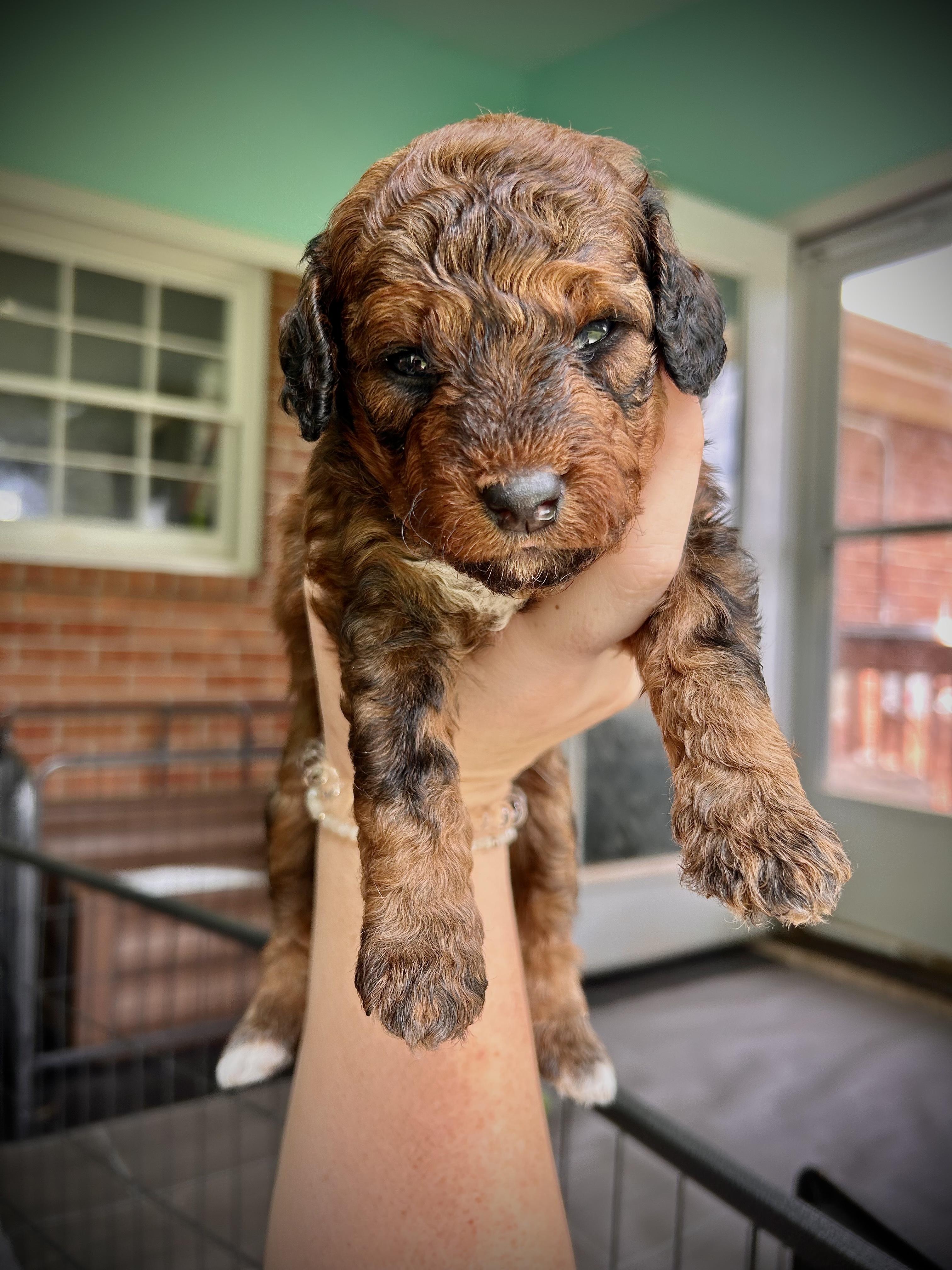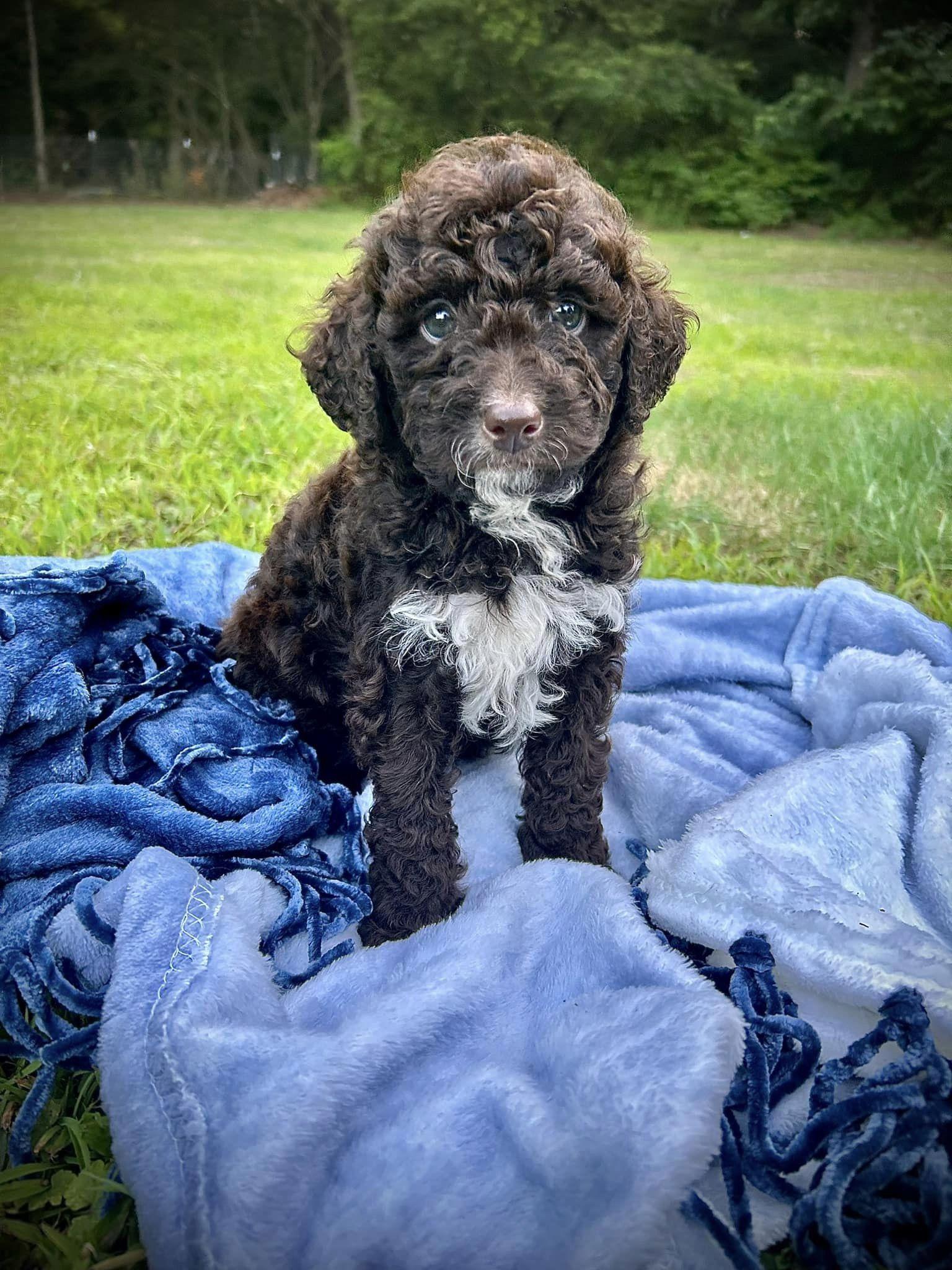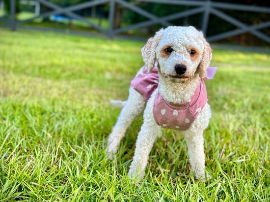 I'm Megan C., the breeder behind Meg's Doodles and Poodles located in Danielsville, GA. Our dogs are bread for health, temperament, and beautiful coats. I put a ton of work into my litters including but not limited to ENS (Early Neurological Stimulation), and following a puppy curriculum to ensure you go home with a well socialized pup who is well underway with their potty and crate training and introduces to many sights, smells, noises etc. I get them used to being brushed/groomed as well!
