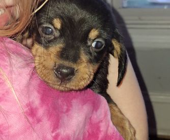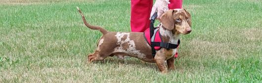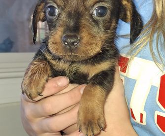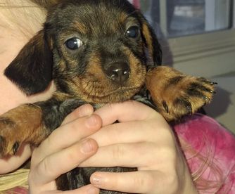 Dachshund puppies are dapple. Colors will vary depending on the parent dogs.