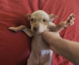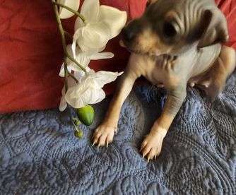 Mazie is a female American Hairless Terrier. Carefully selected as a great representative of her breed, Melanie decided to make her part of their program. Melanie has passed Good Dog’s screening process, which involved a review of their breeding practices, environment, and the mental and physical health of their dogs.