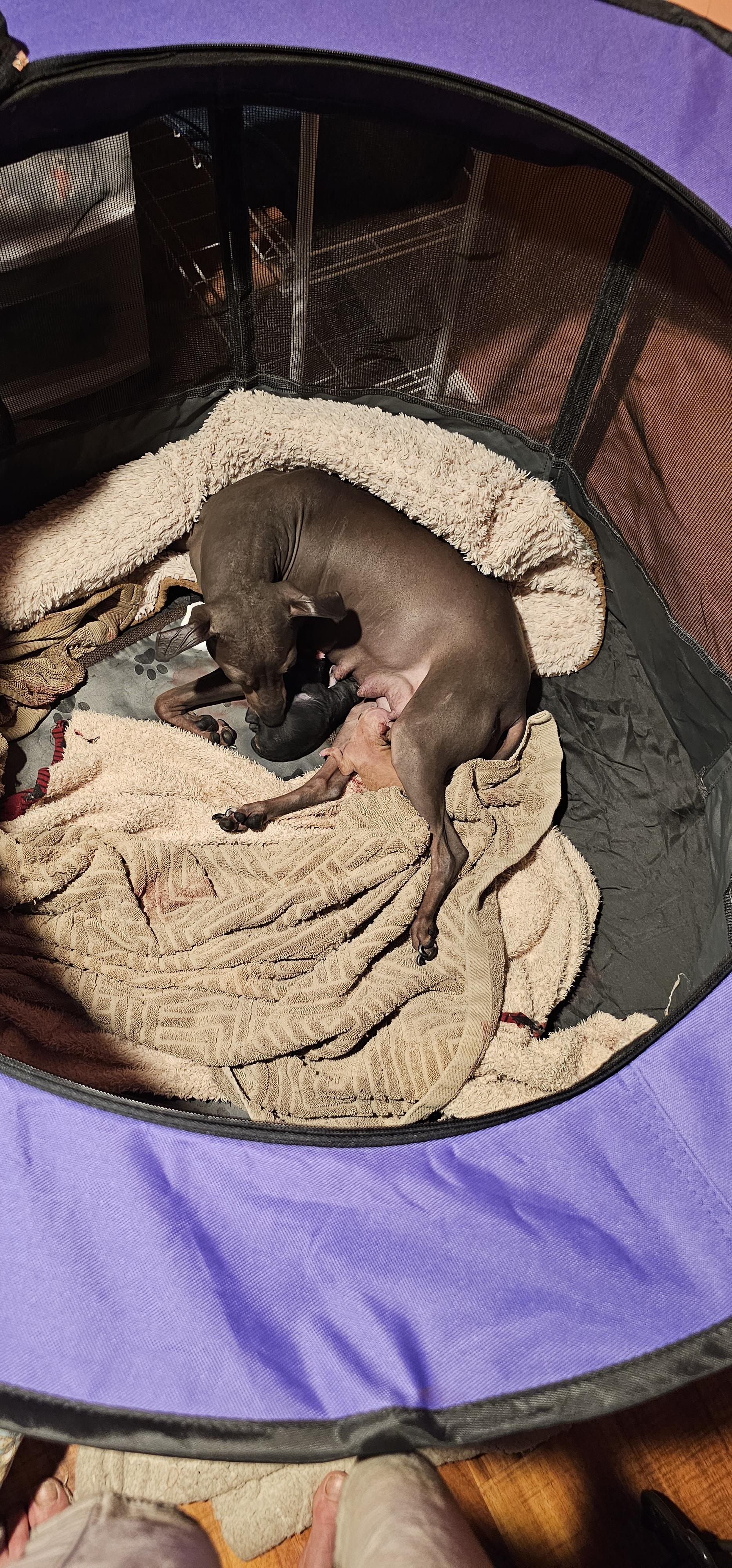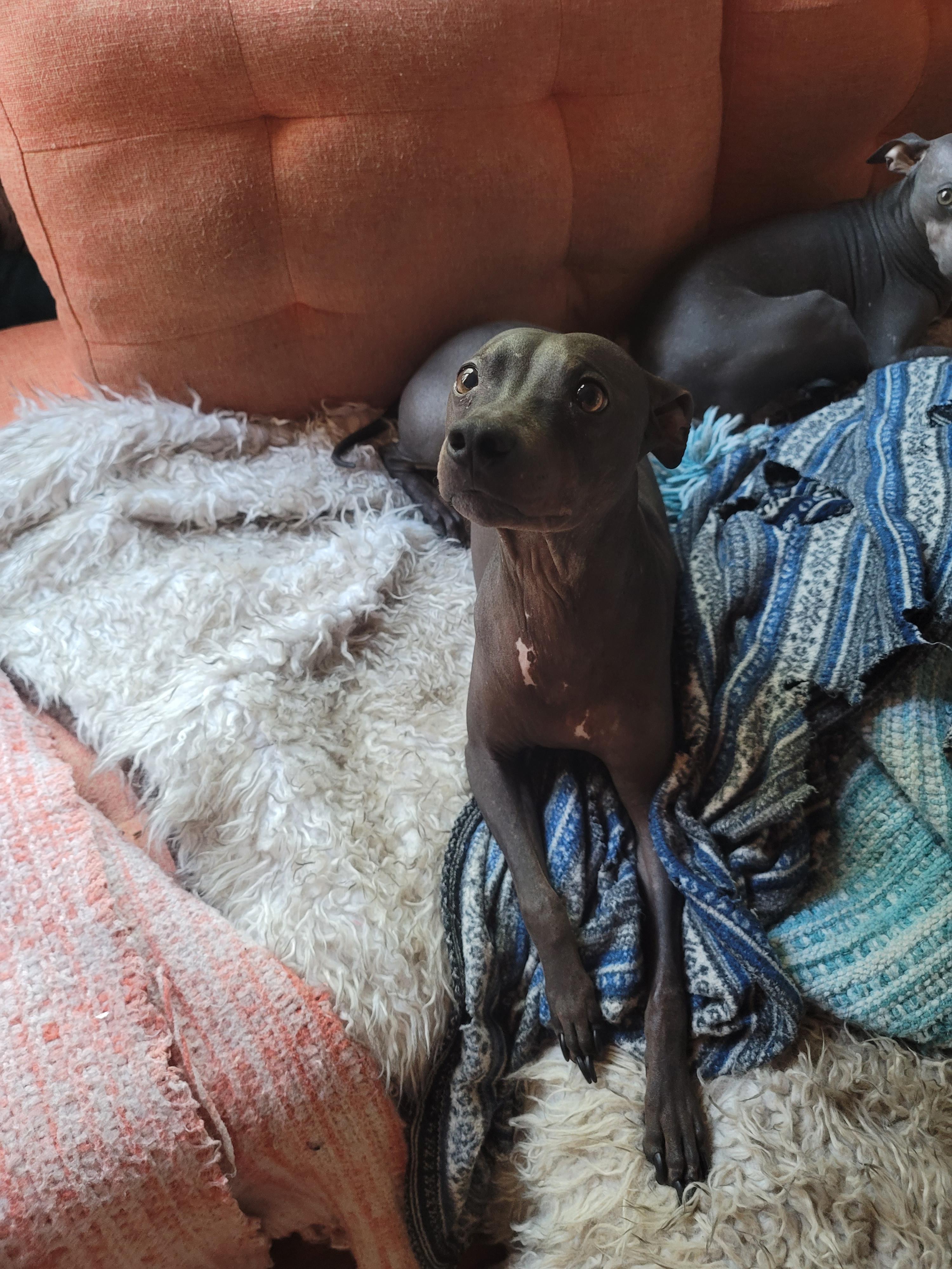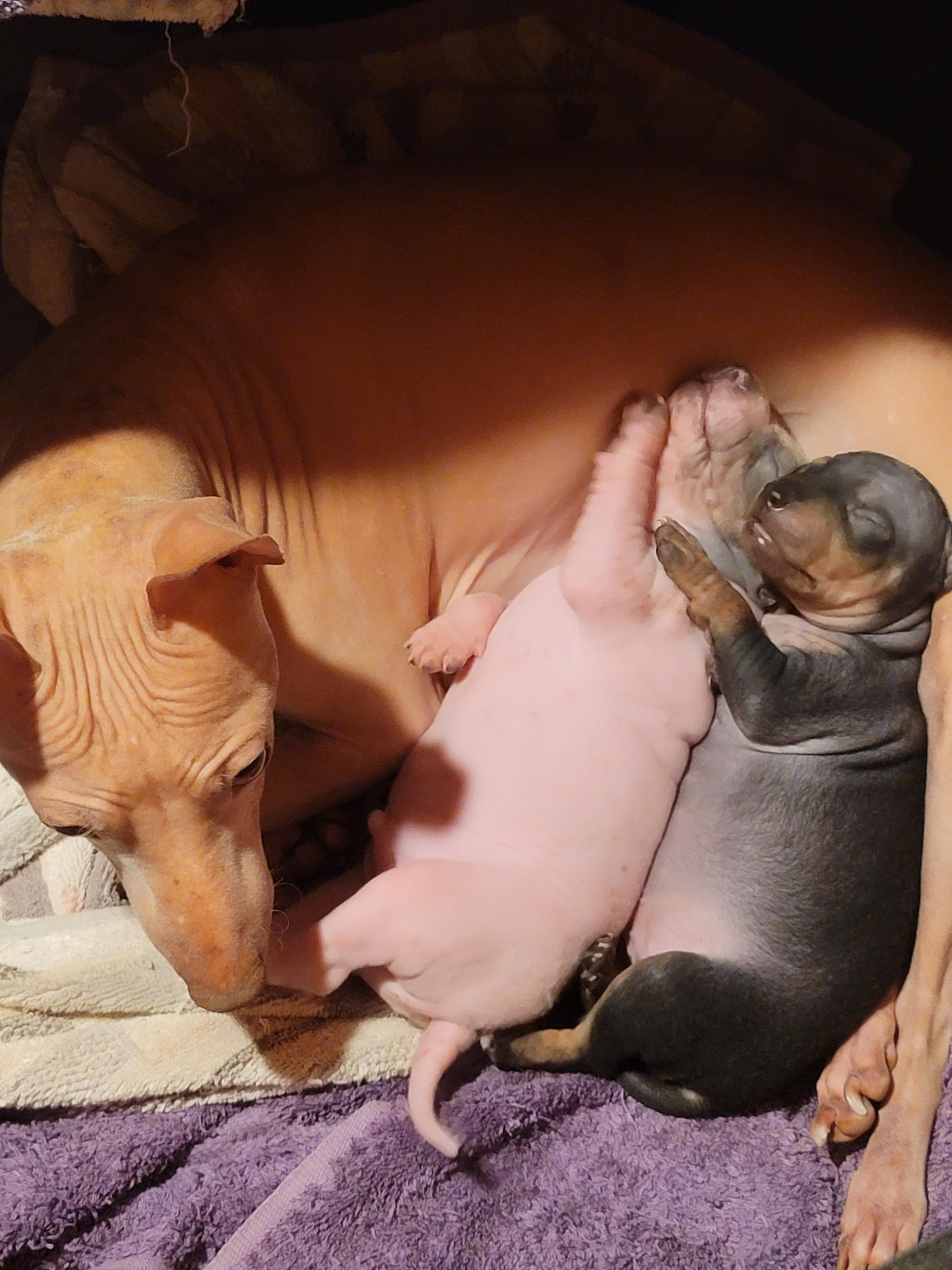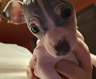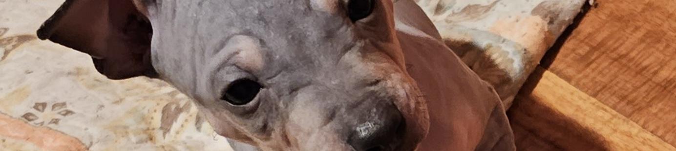 Sif is a female American Hairless Terrier. Carefully selected as a great representative of her breed, Melanie decided to make her part of their program. Melanie has passed Good Dog’s screening process, which involved a review of their breeding practices, environment, and the mental and physical health of their dogs.