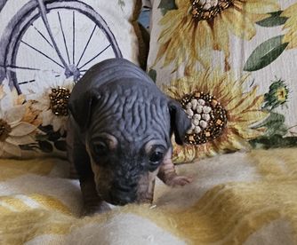 Balder is a male American Hairless Terrier. Carefully selected as a great representative of his breed, Melanie decided to make him part of their program. Melanie has passed Good Dog’s screening process, which involved a review of their breeding practices, environment, and the mental and physical health of their dogs.