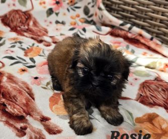 I heard about Melanie through my Aunt and cousin. They love their Shih Tzus that they got from Melanie and talked highly of their experience with Melanie. I started looking into the breed about a year ago and have followed Melanie’s litters wondering if one of those cute little puppies were going to be mine. I would watch to see when they were reserved and would tell my husband “someone reserved my puppy.” He would just smile at me because he was reluctant to bring a puppy into our home though he is a dog lover. We both grew up with many dogs over the years and wasn’t sure if we could fit a new puppy into our lifestyle having gone without one for many years. As I watched each puppy that I thought was mine be reserved over the last year or so the latest litter came along and Teddy was available. For about 3 weeks I kept saying to my husband, Teddy is still available. He would smile. Then on the evening of June 24, I asked him to please look at Teddy and read about Melanie and my husband agreed for me to inquire about Teddy. I contacted Melanie and that night after I communicated with Melanie, my husband said to me, “you know you want that puppy so go ahead and reserve him.” I was kind of hesitant because I wanted him to be all in like I was. He sensed my hesitation and asked “what are you waiting for.” I knew that Teddy was ours the first time I saw him. My husband confirmed that for me when he encouraged me to reserve him. My 18 year old son was even saying “do it mom, you want that puppy.” We were on our way to being a family with Teddy! Melanie has been wonderful to work with and very responsive when I reached out with any questions. She sent me updates and pictures of him. She kept me in the loop on his first bath and his first vet visit. Teddy came into our home and settled right in. We ALL love him. He gives us such joy, and he makes us laugh. Thanks to Melanie for raising such beautiful, social, loving puppies. I highly recommend her!