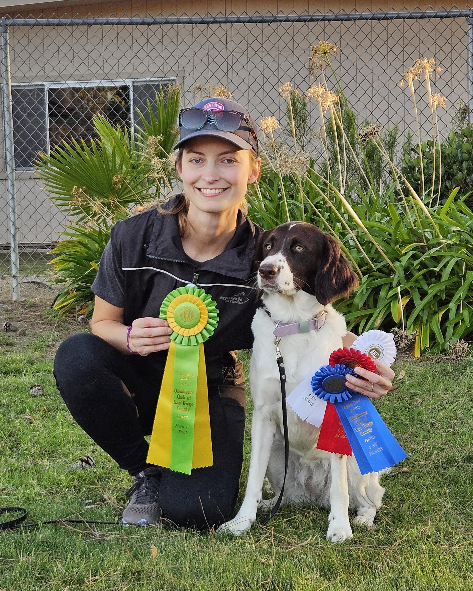 Ellie is a member of Drentsche Patrijshonden Club Nederland, American Drentsche Patrijshond Association, San Diego NAVHDA, North American Versatile Hunting Dog Association, Scent Work Club of San Diego, North American Canicross, and Vereniging de Drentsche Patrijshond.