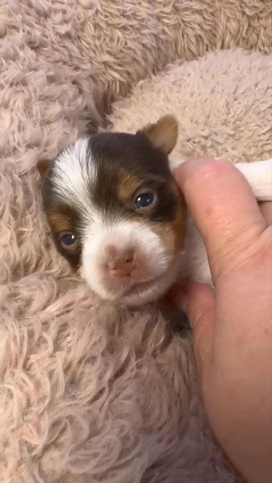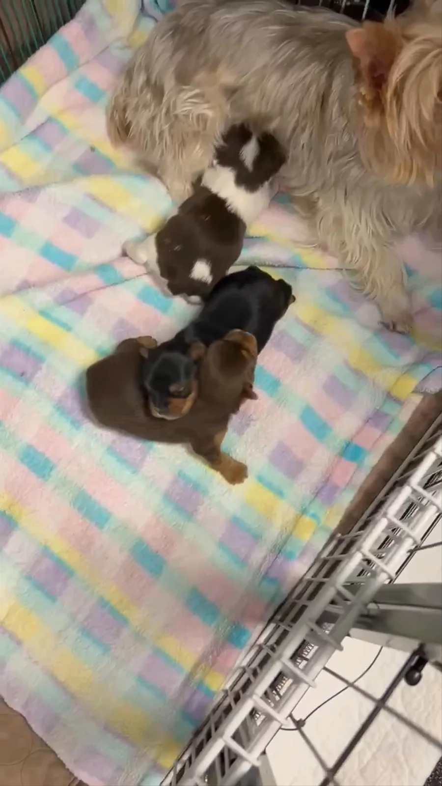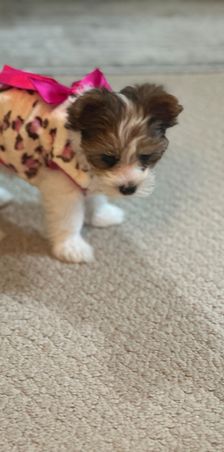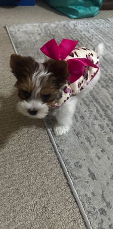 Sable & Tan Parti Yorkie Girl Nyla, her moma sent these to me.