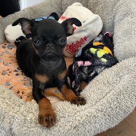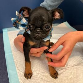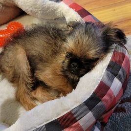 Kristen is a wonderful and professional person who helped me achieve my greatest birthday wish! Worf is absolutely perfect and exactly who I was looking for (and I looked for a long time). From the moment Baby Bear Worf and I met, we loved each other and became best buds. Kristen made the whole process go so smoothly, and based on how loving, healthy, and smart/trainable Worf is (he already knows sit, leave it, fetch, lay down, and of course his name), it’s clear she knows what she is doing and takes exceptional care of her dogs and puppies. Kristen is the BEST! If you’re looking for a happy, healthy, and well adjusted Brussels Griffon, Kristen is the person to contact. Thank you, Kristen!!! Words cannot adequately express how grateful I am.