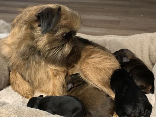 Beautiful Zara and pups is a female Brussels Griffon. Carefully selected as a great representative of her breed, Kristen decided to make her part of their program. Kristen has passed Good Dog’s screening process, which involved a review of their breeding practices, environment, and the mental and physical health of their dogs.