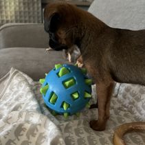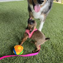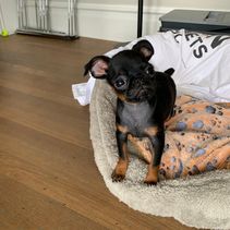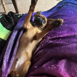 Thank you again Kristen for making our dream come true! You have been such an amazing breeder and communicator since the beginning! I am so glad we reached out to you. Thank you for everything especially getting him used to the carrier before we got him. That made our flight home so much more relaxing! Boluo has been a fun, loving and energetic puppy and we absolutely love him!(I think he loves us too! :P) He is adjusting well to the new home and even made a few new friends in the neighborhood already! I highly recommend Kristen if you want a loving BG furry friend to join your family.
