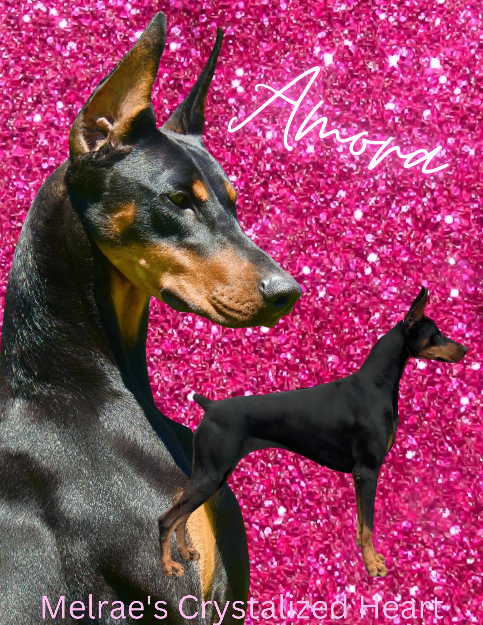Amora is a female Doberman Pinscher. Carefully selected as a great representative of her breed, Melissa decided to make her part of their program. Melissa has passed Good Dog’s screening process, which involved a review of their breeding practices, environment, and the mental and physical health of their dogs.
