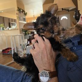 My mom has been grieving the loss of my dad and their sweet Yorkie soon after. She looked and looked for a new little buddy and thought she’d never find the right one. One night when she was looking on Good Dog, she called me and said she found him! She knew the moment she saw his pictures. Melissa was so easy to talk to from the beginning, fielding all our questions without hesitation. She has been the kindest person to deal with. So understanding and accommodating when we needed to meet for pick up. Thank you for a wonderful experience and especially for caring for your puppies as you do! Rocky (Merlin) is healthy and happy!!