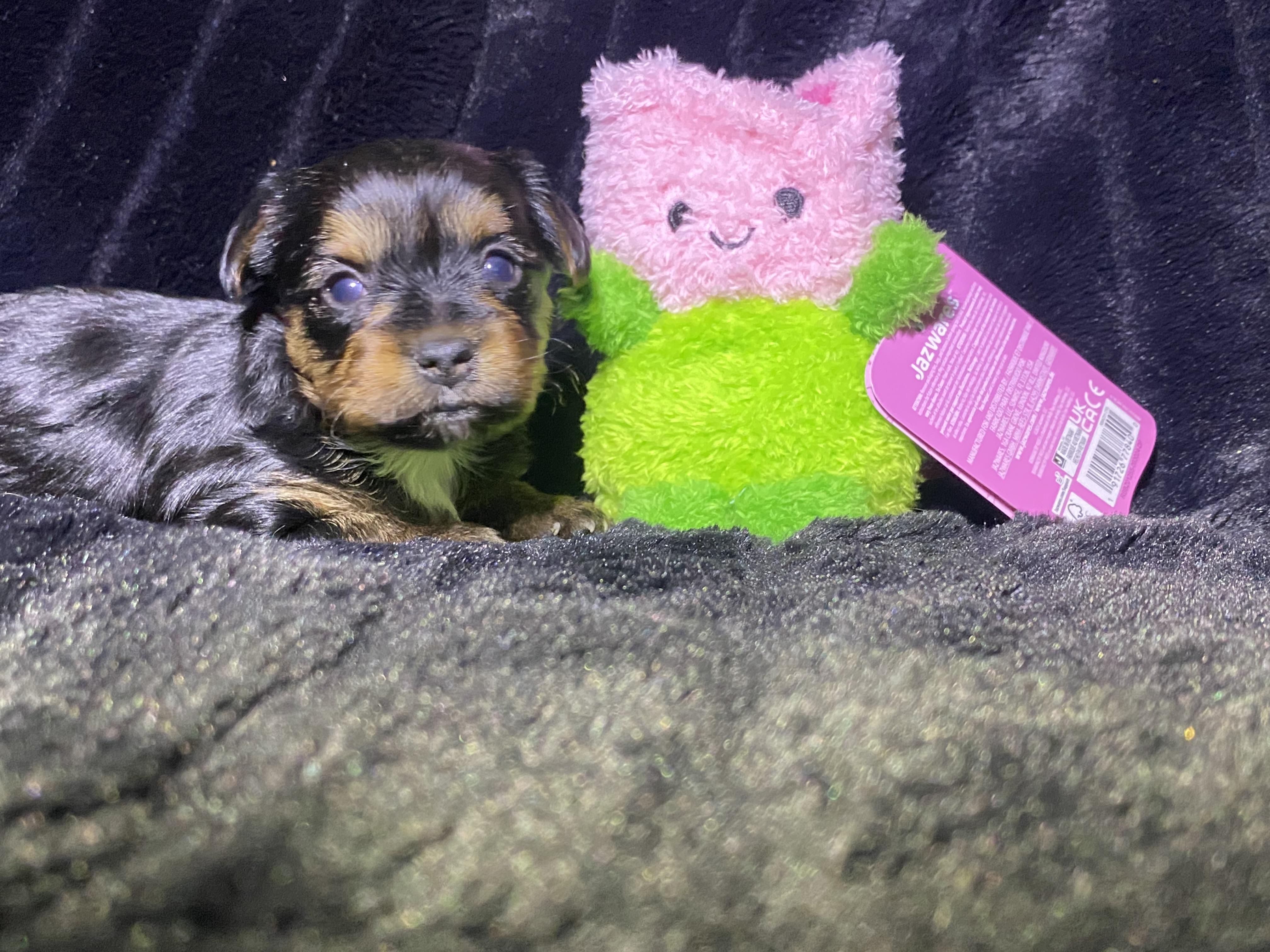 My puppy, Freyja, is adorable! She’s smart, sassy & has a happy disposition. She is larger than expected (8.5 lb at 7 months) and will be a beauty when full grown. Thank you, Melissa!