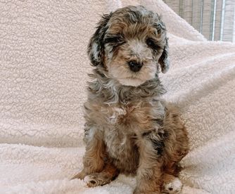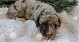 Aussiedoodle puppies include blue merle and red merle. Colors will vary depending on the parent dogs.