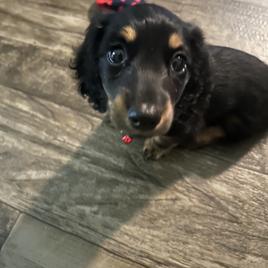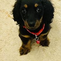She’s a spirited handful at 5 months, just like a dachshund should be. And nobody can resist petting this friendly pup.