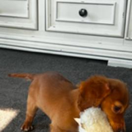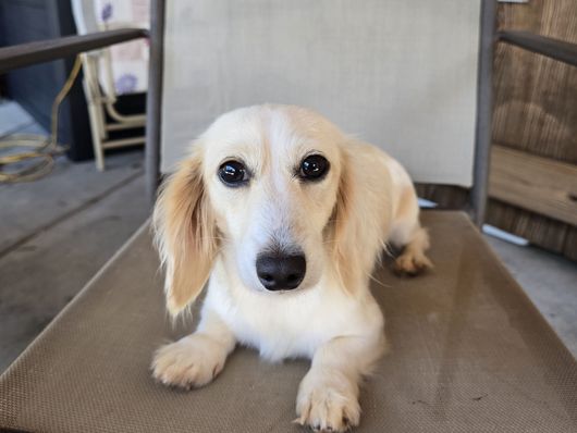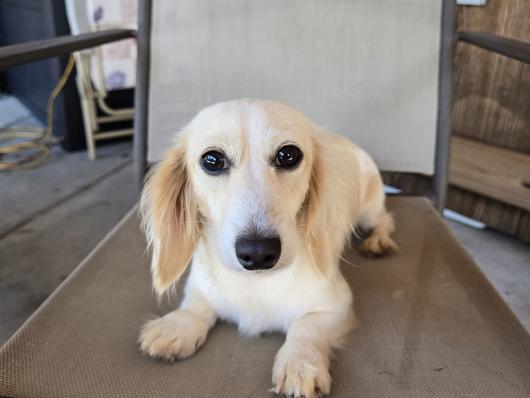 Zora is a female Dachshund. Carefully selected as a great representative of her breed, Melissa decided to make her part of their program. Melissa has passed Good Dog’s screening process, which involved a review of their breeding practices, environment, and the mental and physical health of their dogs.