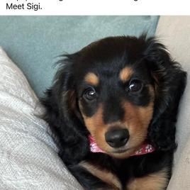I chose Sigi from a host of dachshund pups after seeing her parents and talking at length to Melissa. I loved the fact that she had been raised in a home and exposed to so much. She’s a very confident little girl, afraid of nothing!