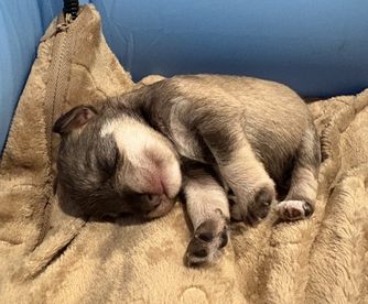 Edie is such a sweet girl. She is very playful when she wants to be. Most of the time she just wants to lie in our laps. She is not aggressive at all. She is very happy to see anyone that comes to visit. She is almost 3 and this is her first litter. She is a very good mom. She loves to be at the center of attention. She is a very affectionate dog.