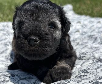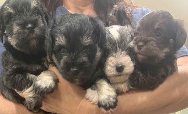 Our puppies are black and silver. Colors will vary depending on the parent dogs.