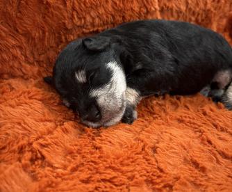 Bert has brought so much life to our family. He is a spunky boy. He thinks he is a Saint Bernard. He likes to play with bigger dogs. He doesn't know his size limitations. He loves to play fetch. He retrieves as well as any Labrador. He quickly found his spot on our bed at night. He was quite the gentleman when Edie had her puppies. He did his part in sitting with the puppies when mommy was tired.