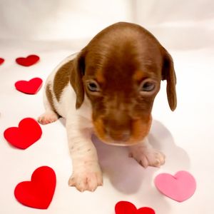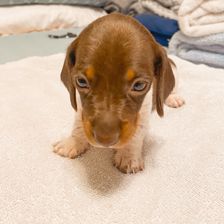Penny is an ee chocolate-based cream miniature dachshund, born on September 6, 2023, and turning two years old on September 6, 2025. She maintains a healthy weight and a proportionate build consistent with her breed standard. Penny is characterized by her exceptionally sweet and affectionate temperament; she is truly gentle by nature and would not hurt a fly. Loyal and attentive to her family, she balances her protective instincts with an easygoing and loving disposition, making her an ideal companion and a cherished member of the household.