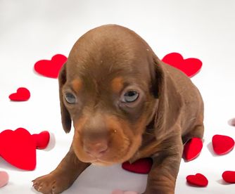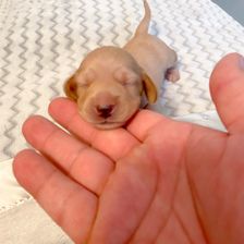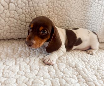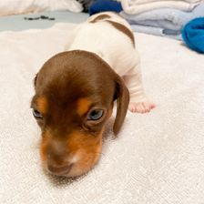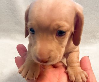 Blue is the best miniature dachshund I have ever owned. He is fully AKC registered and carry’s points, cream, longhair, and piebald. He never barks, is a lover of lamb chop toys and kisses. His birthday is 5/20/22.