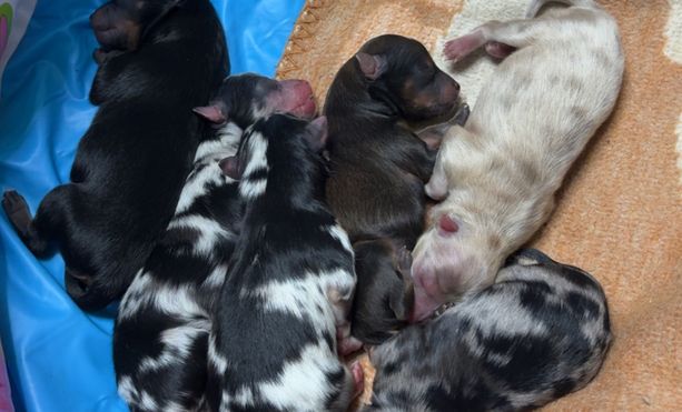 Puppy prices include a $200 non-refundable deposit and between $800 - $1,800 final payment, before taxes & fees.