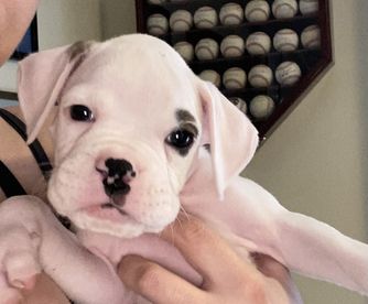 Our puppies include fawn, brindle, and white. Colors will vary depending on the parent dogs.