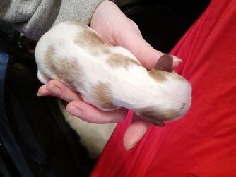 “Puppies come with a health guarantee, up-to-date vaccinations, deworming, health records, puppy socialization, light basic training, and the beginning of potty training, small bag of food, blanket with 1st home scent for transition, bully sticks, a couple toys and pre-spoiled. A deposit is required to reserve a puppy. Deposits are requested to be paid in full by the time pups are 6 weeks old to hold your puppy. You have until you pick up the puppy at 8 weeks old to pay off the remaining balance - however much, however frequent, as long as the puppy is paid for by pickup.”