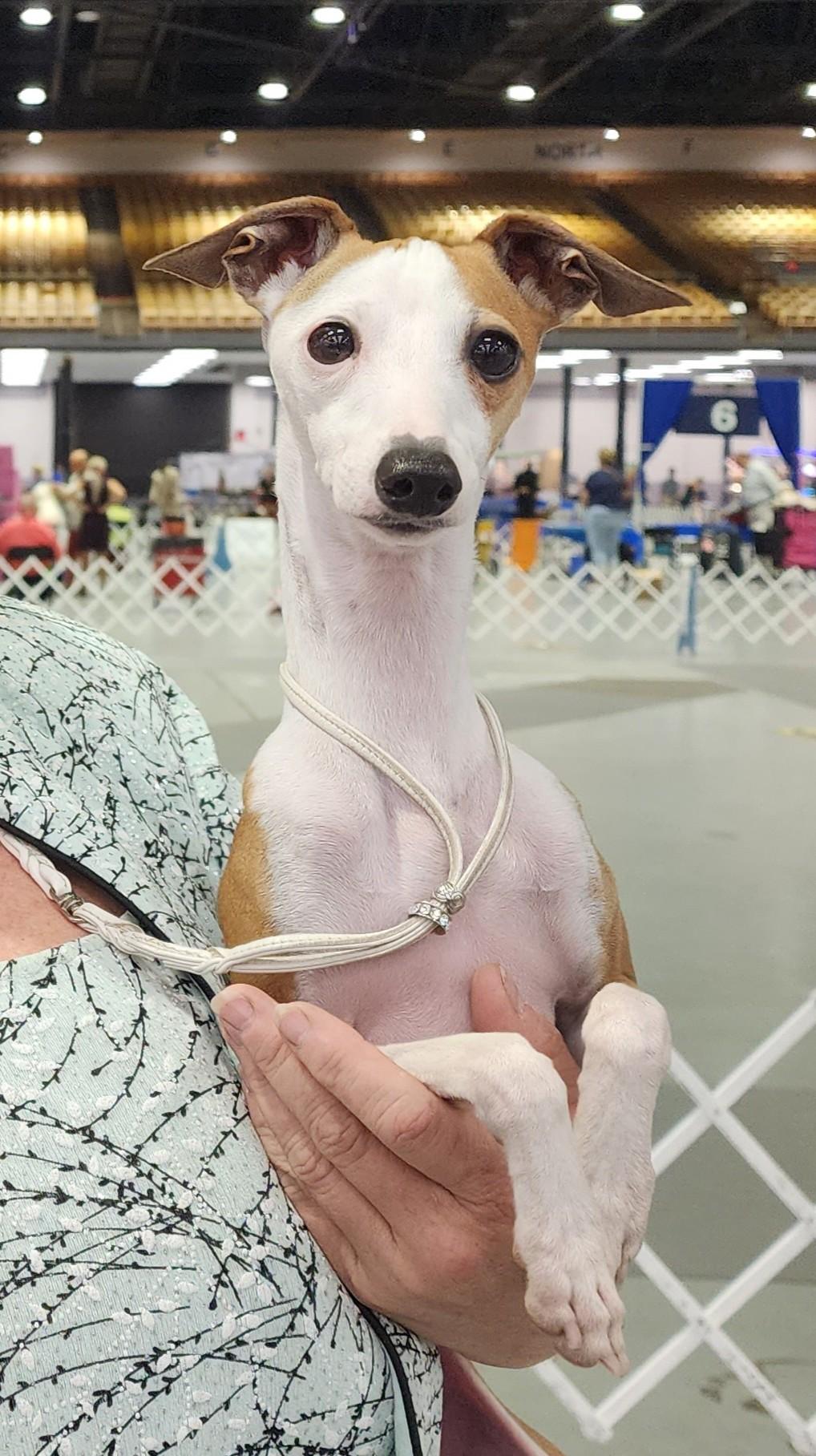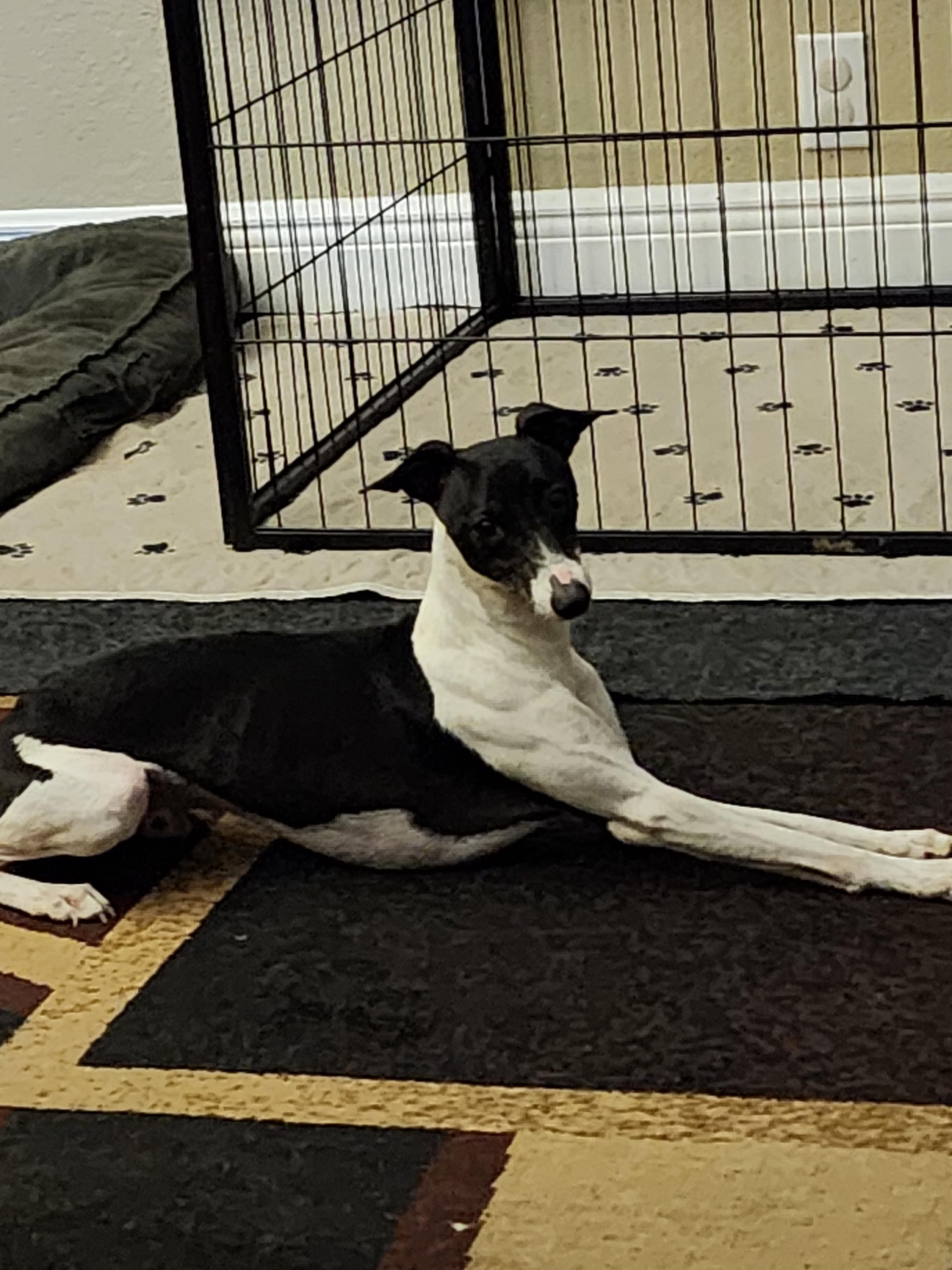 Amadeo is a male Whippet. Carefully selected as a great representative of his breed, Cynthianna decided to make him part of their program. Cynthianna has passed Good Dog’s screening process, which involved a review of their breeding practices, environment, and the mental and physical health of their dogs.