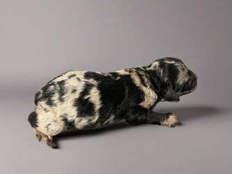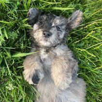 Elvis isn’t just any dog—he’s the life of every gathering and the perfect mix of energy and relaxation! This Phantom Merle stunner brings joy with his playful nature, always up for a game with anyone holding a toy. Yet, he's equally content to lounge and hang out when it’s time to unwind, making him an ideal, adaptable friend for every family. Registered as a Standard with the AKC, Elvis has a unique lineage from Moyen-sized parents, giving him a balanced, medium-sized frame that's just right for family life.