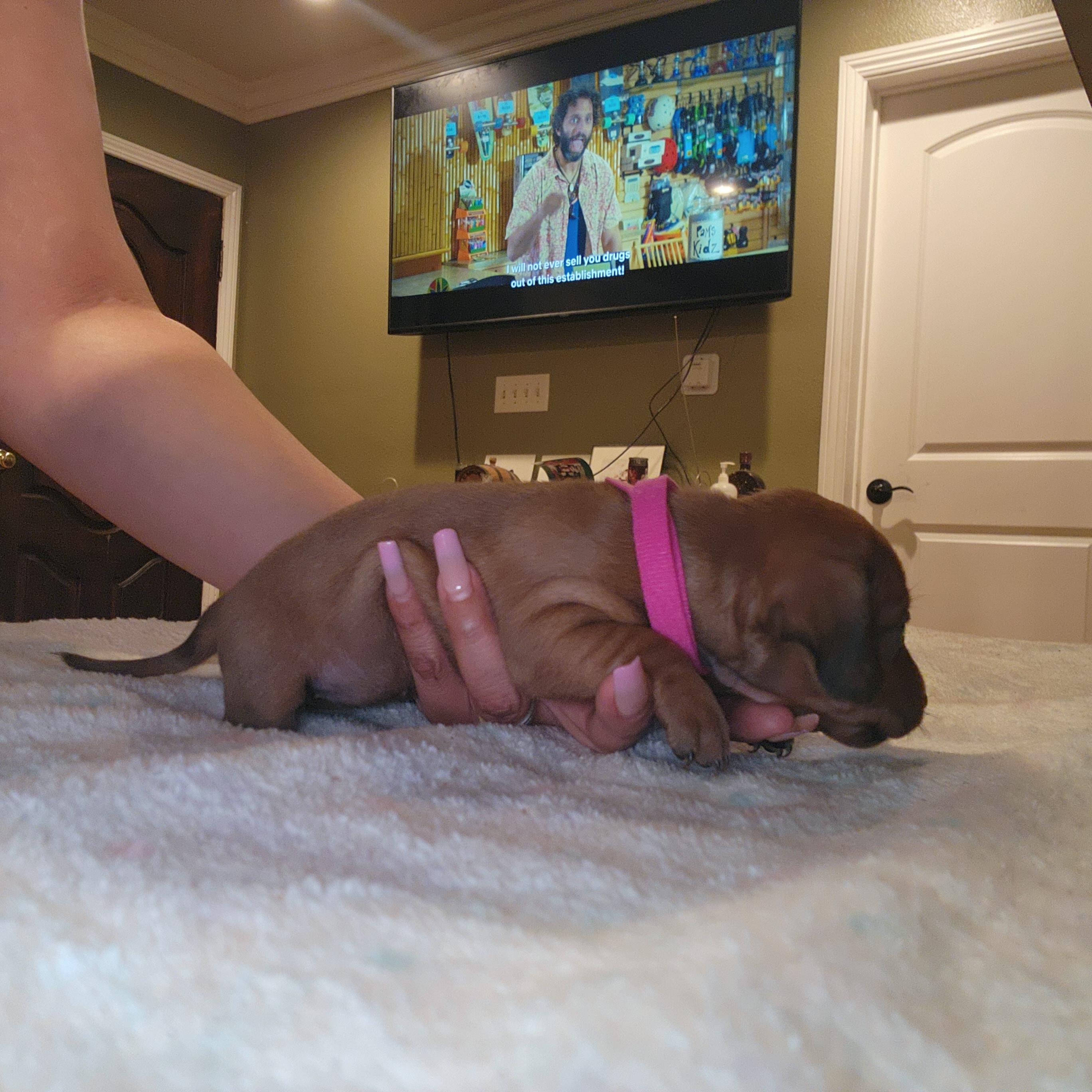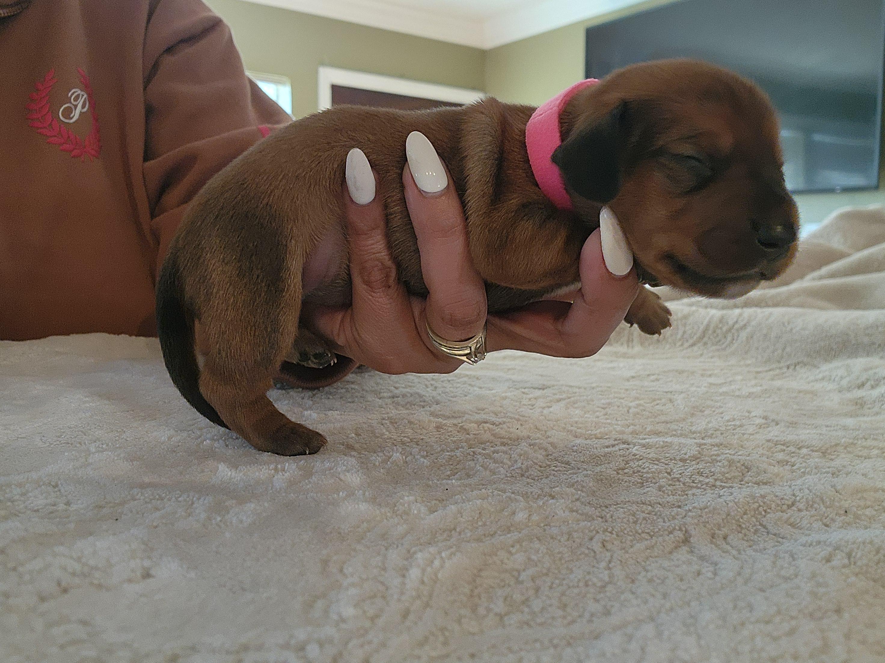 I'm Mercedes J., the breeder behind Mercy and Vics Dachshunds located in Los Angeles, CA. We love to responsibly raise and train our puppies so they have the tools to be well-rounded, beloved family members. We give our dogs the best lives possible. We are looking for families and individuals that will provide our puppies with the same level of love and care.