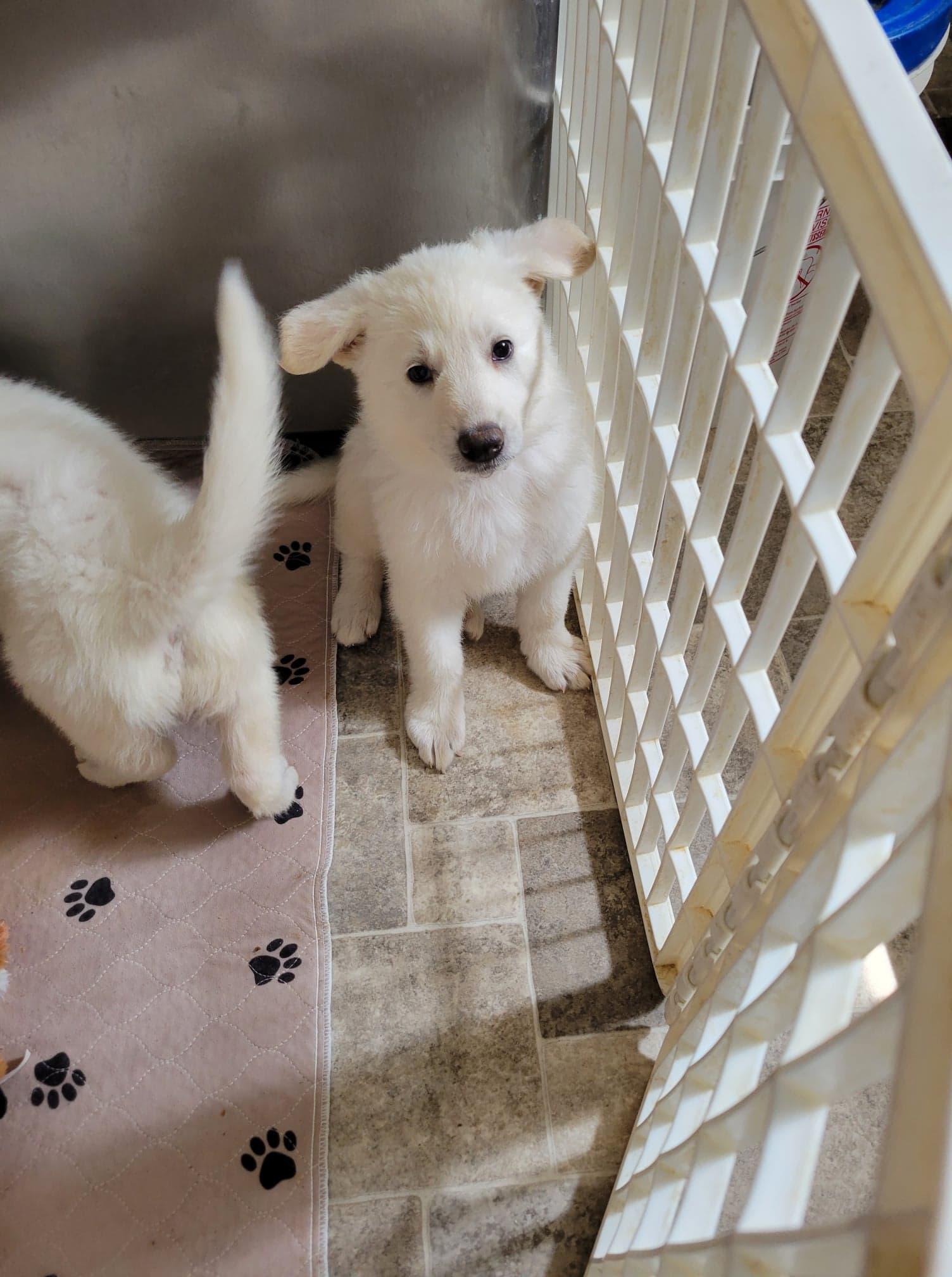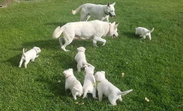 I love horses and dogs. We had a colored German Shepherd growing up. We got our first White German Shepherd in 2018. Our neighbor happened to have a male and we loved each of their traits. It didn't take long before we knew that we wanted to breed them and have a litter. My kids were so excited (I have 6 kids and what kid doesn't like puppies)! I have been learning and growing ever since. We have a natural environment for socialization and have found that it is one of the most important things in dog breeding. It has been an absolute joy of a journey, and we are so happy to be able to share these wonderful dogs with other loving families and individuals.