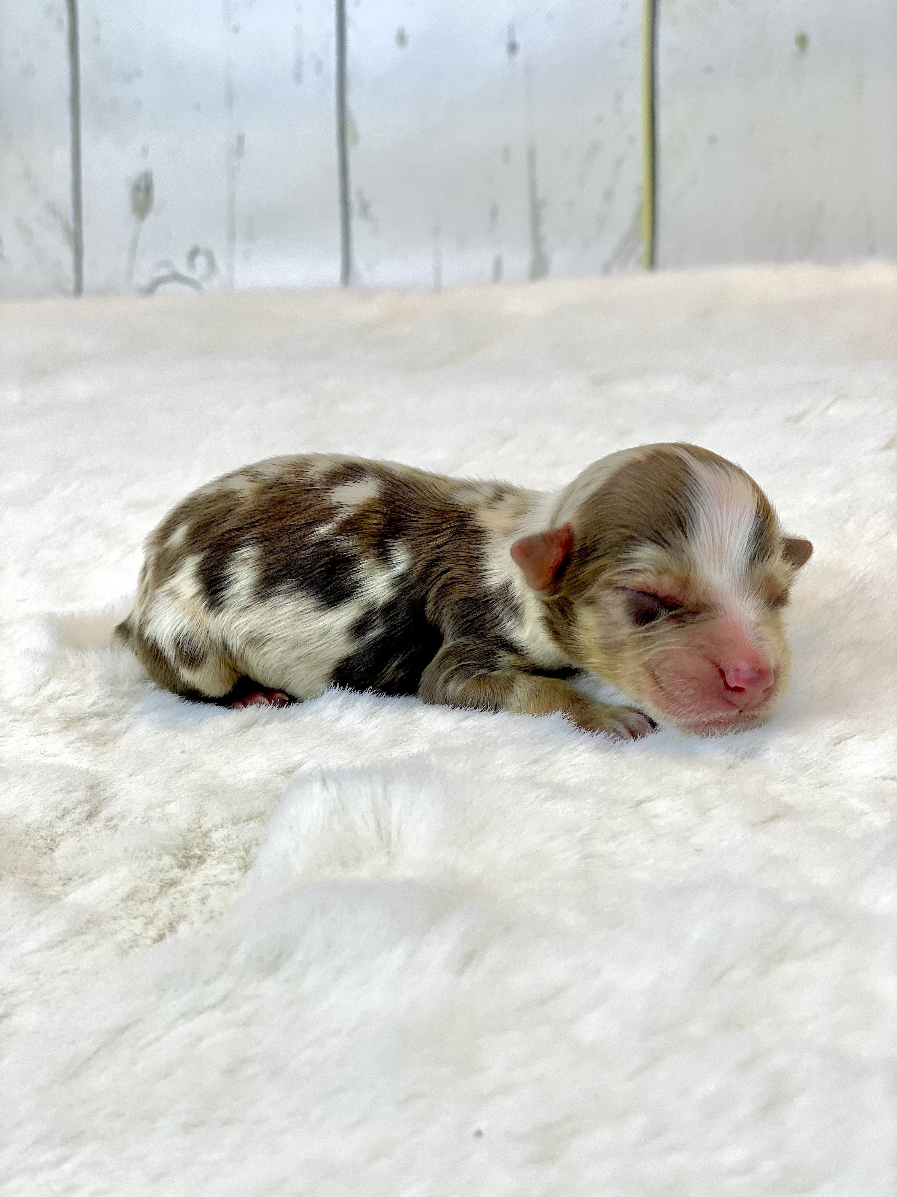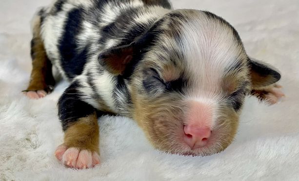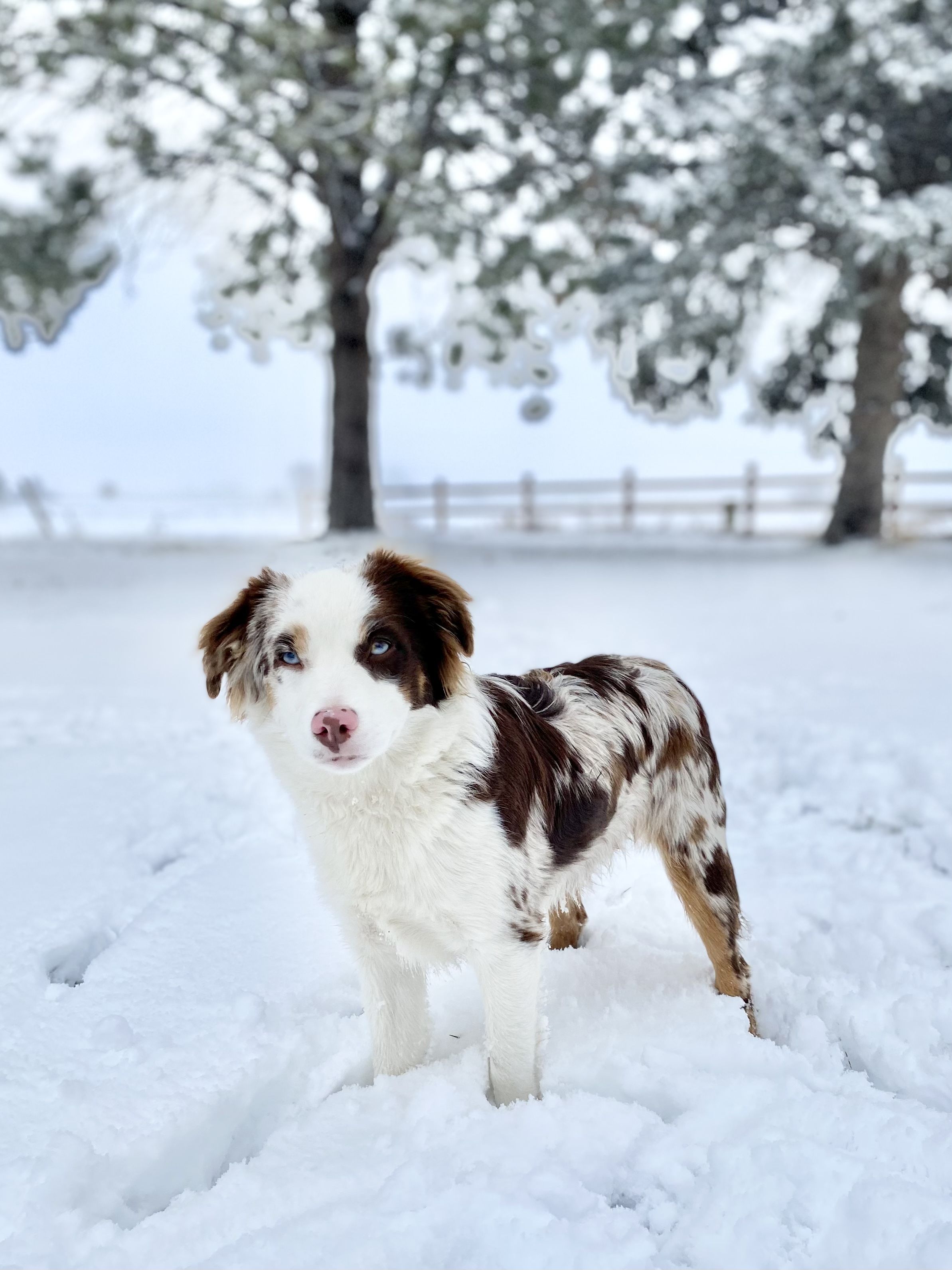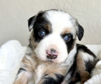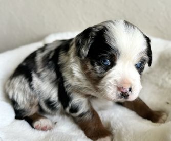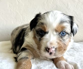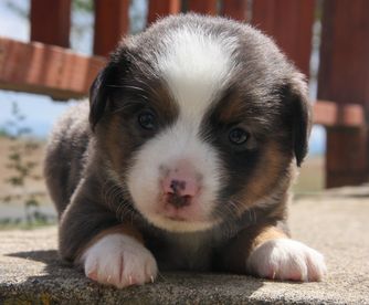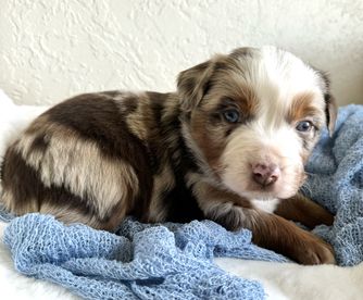 I'm Aubrey M., the breeder behind Merrick Mini Aussies located in Jerome, ID. We strive to produce good family companions. Our dogs go everywhere with us-they are part of our family! Puppies are raised on our farm and in our home and handled daily by adults and children. They are exposed to other dogs, cats, chickens, and cows. We love our dogs and know you will too. We produce well-rounded, healthy pups who will be ready to thrive in their forever homes!