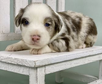 Our puppies include blue merle and red merle. Colors will vary depending on the parent dogs.