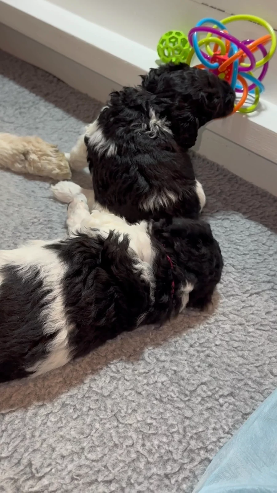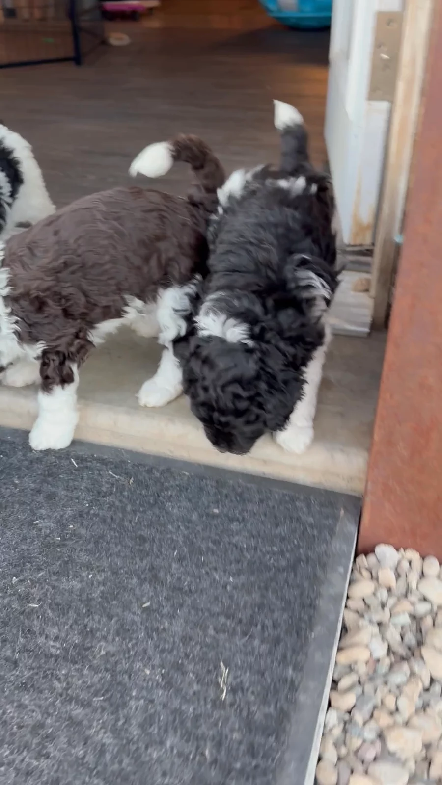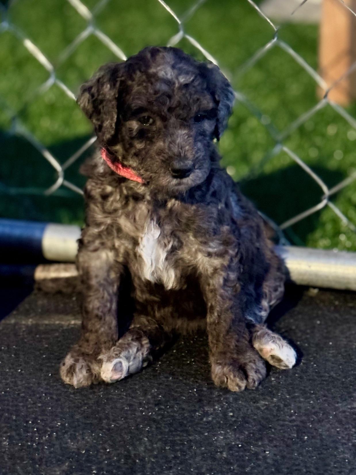 Our Bordoodle puppies include red, blue merle, white ticked, white and black, and black. Bernedoodle puppies include brown, sable, black, black and white, tri-color, and merle. Colors will vary depending on the parent dogs.