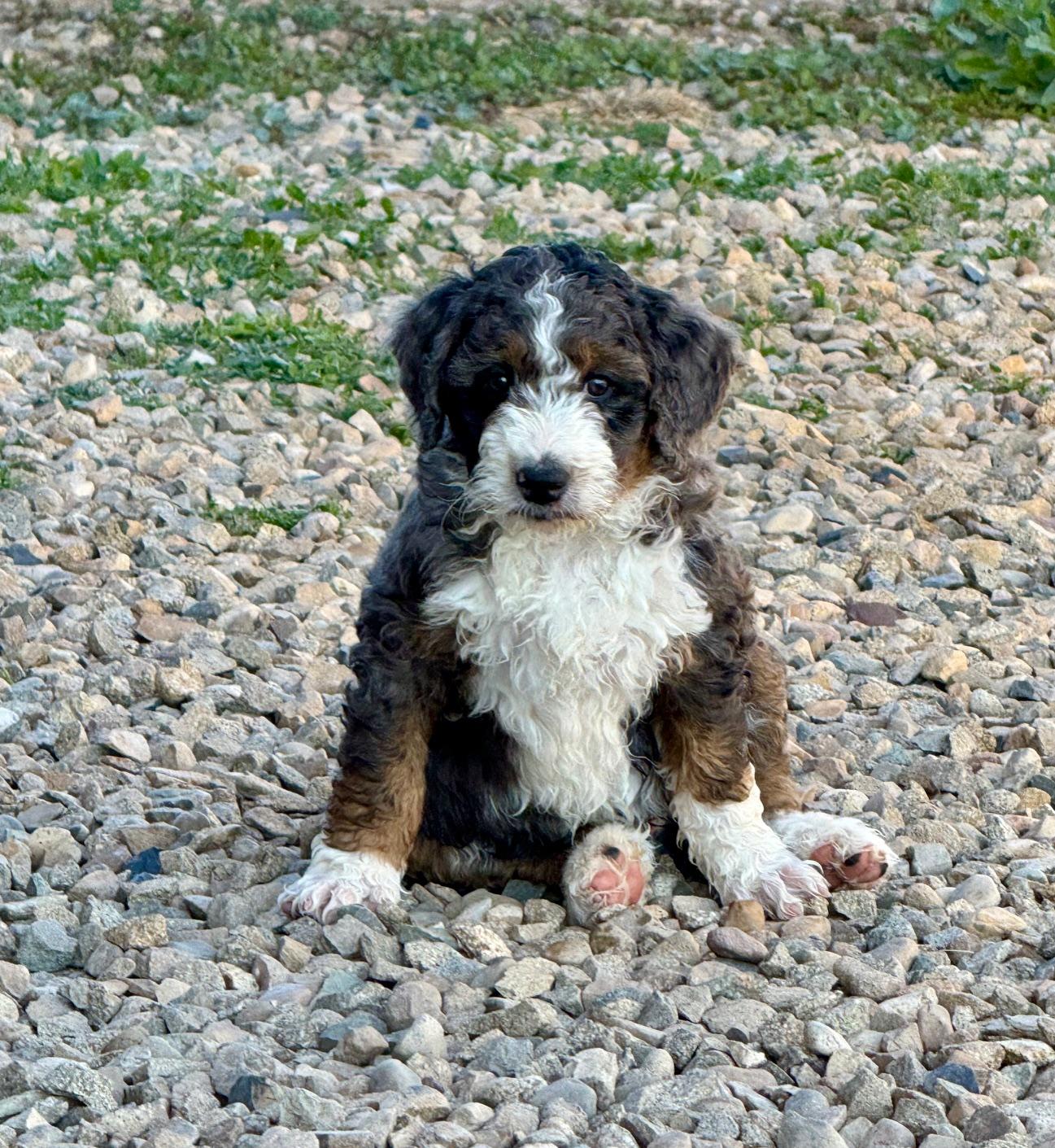 Our Bordoodle puppies are mini size. Bernedoodle puppies include mini and medium sizes. Sizes will vary depending on the parent dogs.