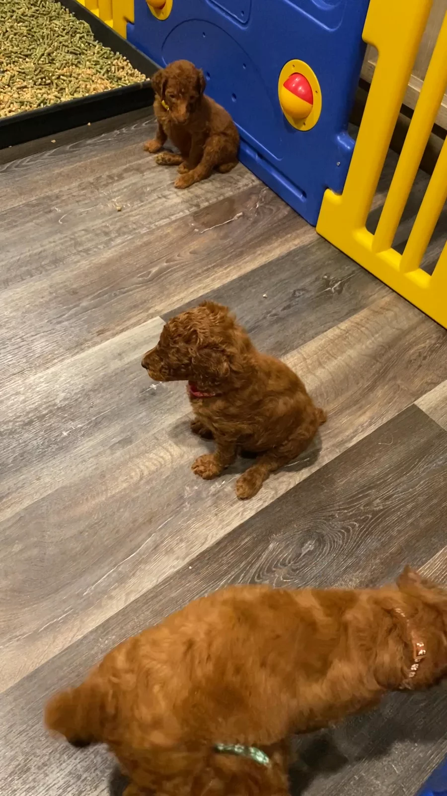 Hey everyone! Have a couple of videos to share of the pups. They are all doing great! They are weaned, had their first real bath (only wipe downs as new borns), and have graduated to our dining room! We’re going to start working on our travel schedule over the next week, so I’ll be in touch about that, and we’ll be updating all of their photos tomorrow, so make sure to check those out on their pages! If you have any questions, please don’t hesitate to ask!