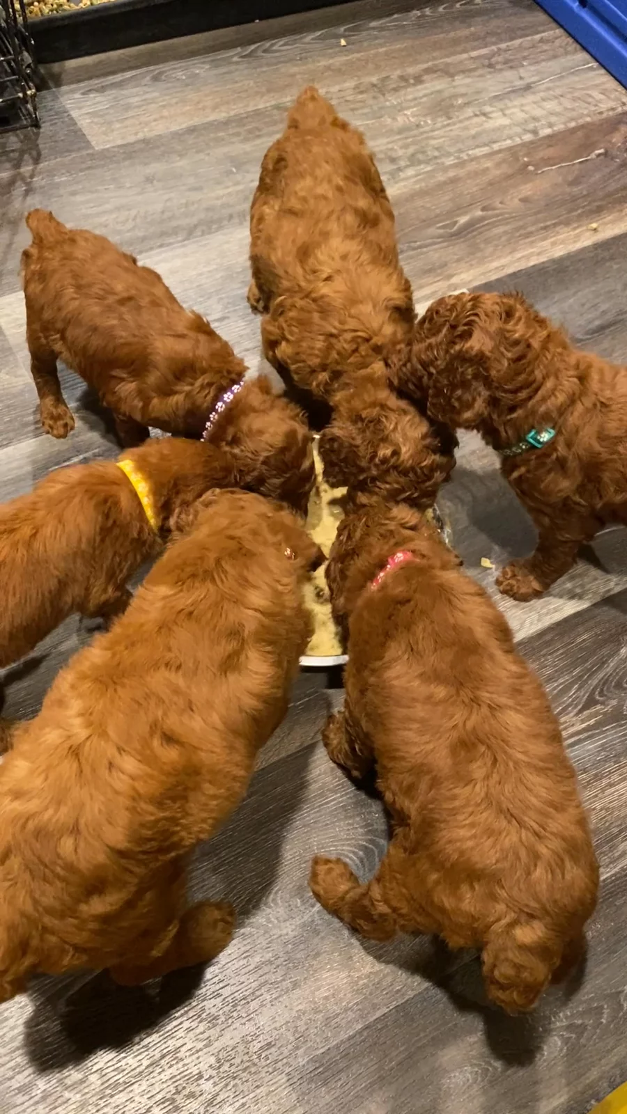 Hey everyone! I just updated the photos on each of the pup’s pages. If you go to your pup, you’ll be able to see the new pics. We’re starting weaning this week, pups didn’t know what to think of the milk we offered! I’ll get a video of them in the next day or two when they get it down!
