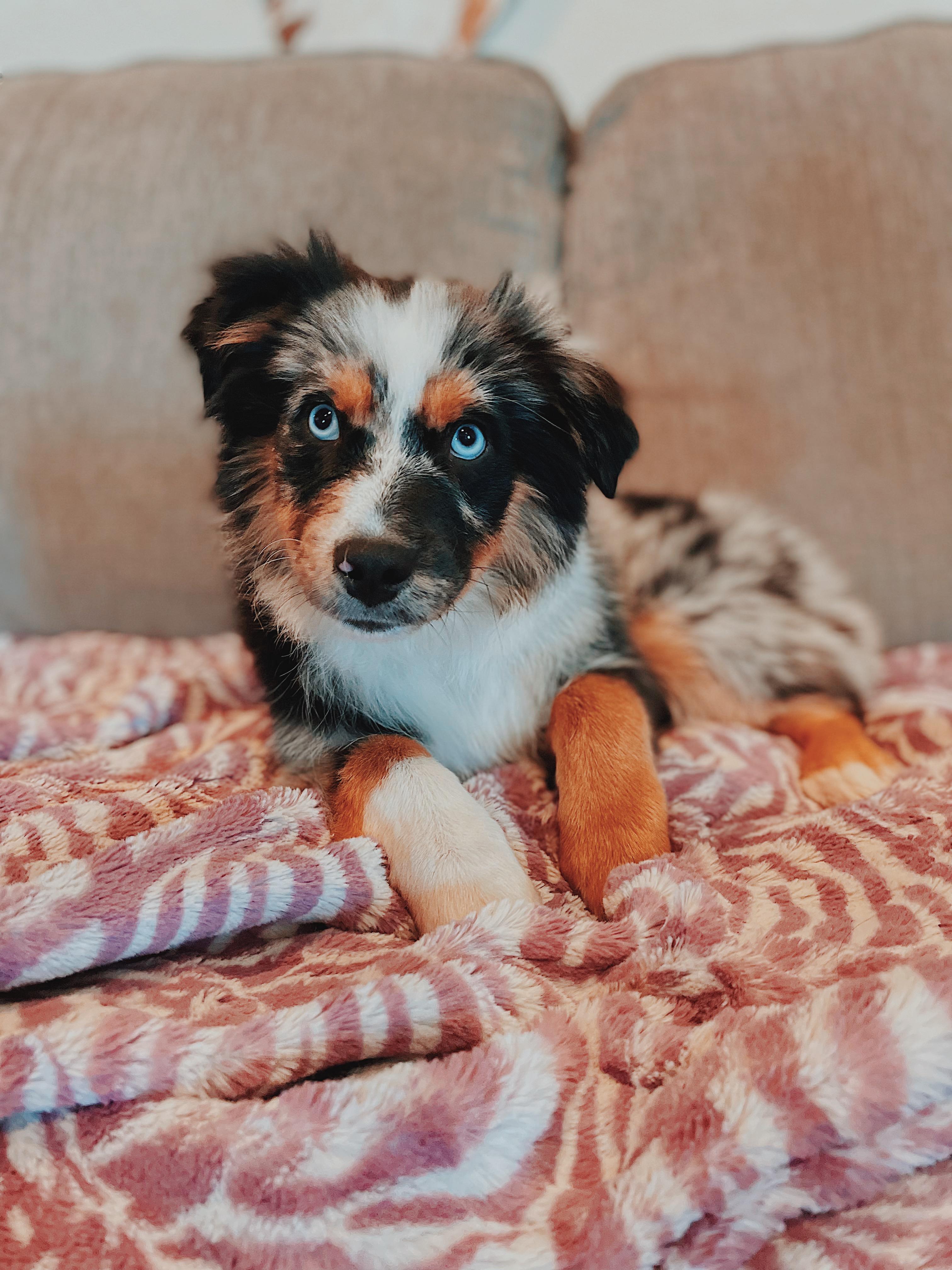Our Miniature Australian Shepherd puppies include blue merle, red merle, and black. Toy Australian Shepherd puppies include blue merle and red merle. Colors will vary depending on the parent dogs.