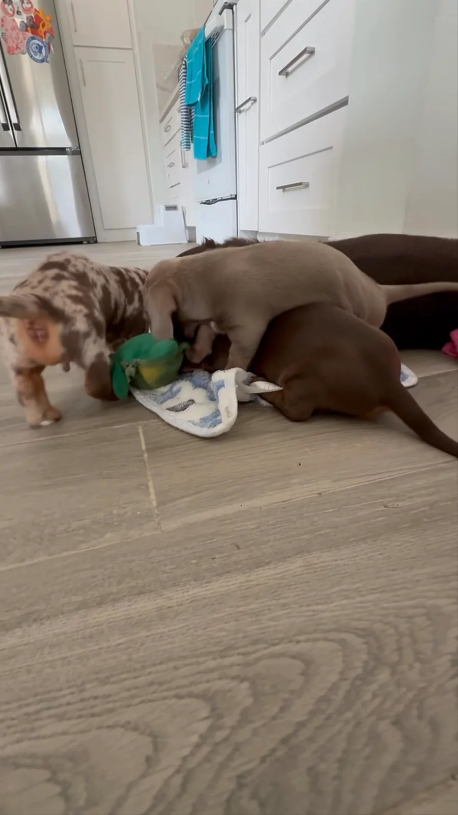 Our puppies include fawn (isabella) and tan, chocolate and tan, and dapple. Colors will vary depending on the parent dogs.