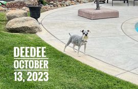 Deedee is our girl she is a delight. We love to take her camping and she loves to be taken on walks in the Forrest or on the beach. She has a great demeanor for kids and loves to play with them as well as other dogs. She has had two litter and all of her puppies are calm and loving.