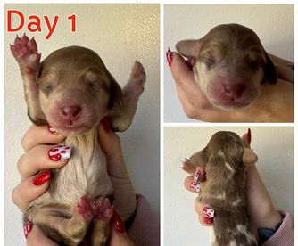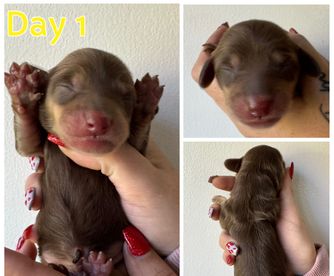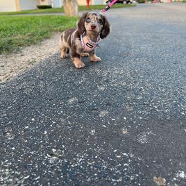I cannot even begin to explain how amazing it was to work with Whitney during the process of my husband and I searching for our first puppy. Whitney was absolutely AMAZING through the whole entire process and is very knowledgeable about mini dachshunds. Right from the start of the puppy searching process she had sent us so many pictures and videos of our puppy Bo and we knew he was the one. Whitney gave us updates about our little man whenever we asked for them and made sure that any questions we had about him before and even after we picked him up were answered. Even weeks after getting our puppy she still continues to share all of her knowledge, and has been such an amazing help through this process. With getting our first puppy it has been such a blessing having her as a breeder that we still have a relationship with and I know I can always ask her about anything I have questions on. It is also amazing how socialized he was before we had picked him up and that had really helped him as he is growing up!! We were so beyond lucky to have Whitney as our breeder, and if you are looking to get a mini dachshund to add to your family we HIGHLY recommend going through Whitney. She is AMAZING, we are so lucky to have our little Bo in our family and we have her to thank!!