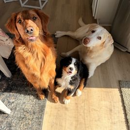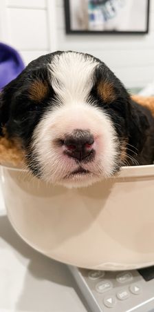 Annette was great all the way through our puppy process. Very good with communication! Very easy to work with and helpful. Our sweet Bernie slept through the night day one. Bonus: he already knew how to use a doggy door and that made potty training so much easier.