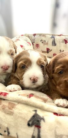 Our puppies include caramel red, red, and apricot. Colors will vary depending on the parent dogs.