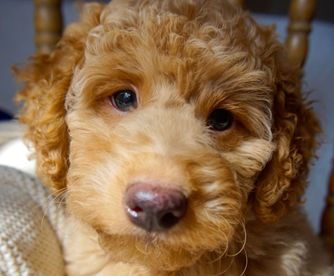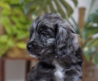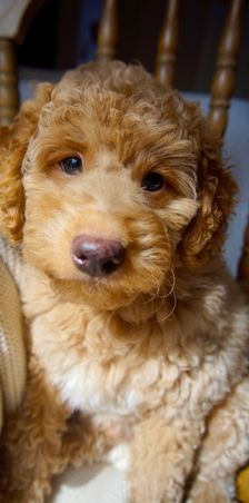 Our Goldendoodle puppies include red, chocolate, merle, and parti. Aussiedoodle puppies include blue merle, black phantom, black and white, and black tri-color. Golden Aussiedoodle puppies include tri-color, phantom, merle, and black. Colors will vary depending on the parent dogs.