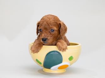 Our Goldendoodle puppies are red. Poodle puppies include apricot, brown, red, and parti. Colors will vary depending on the parent dogs.